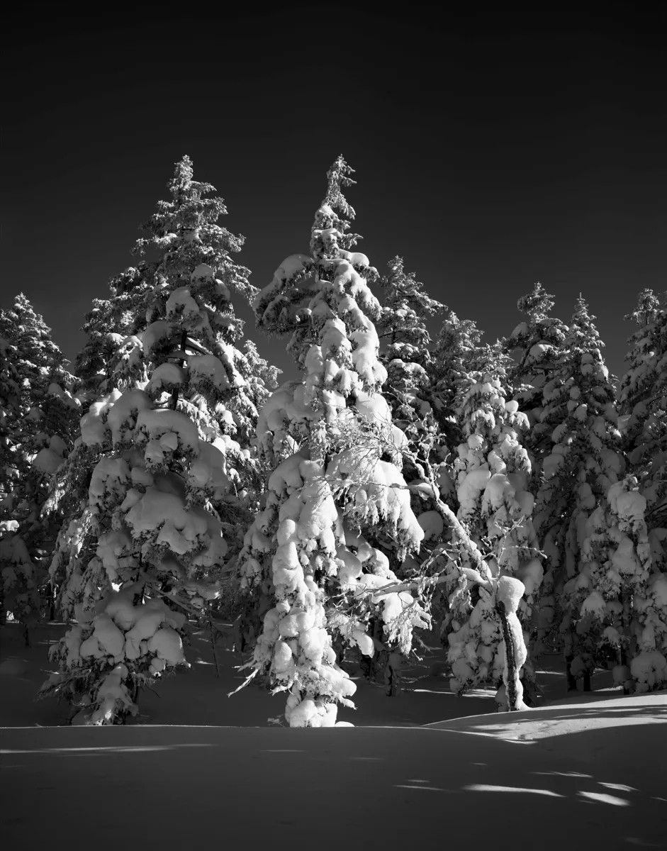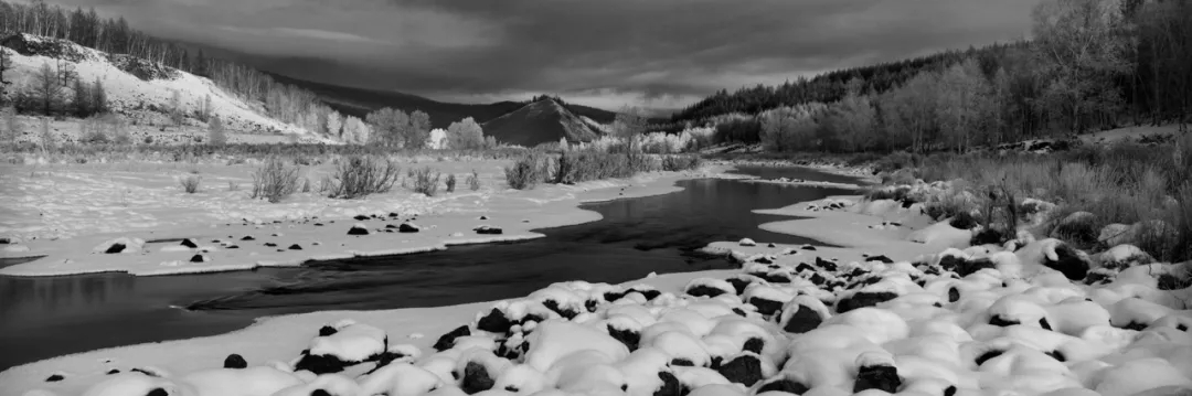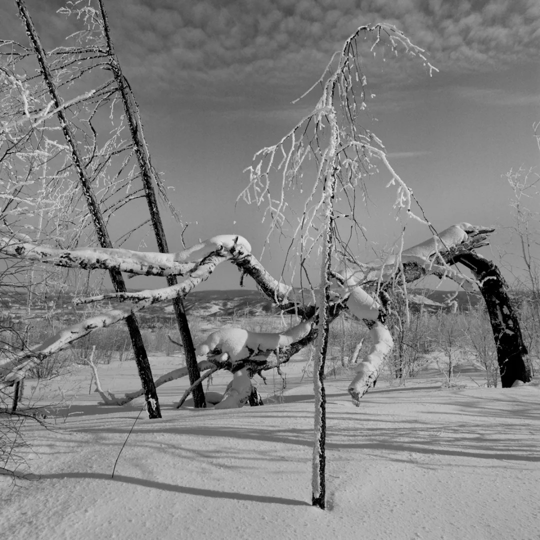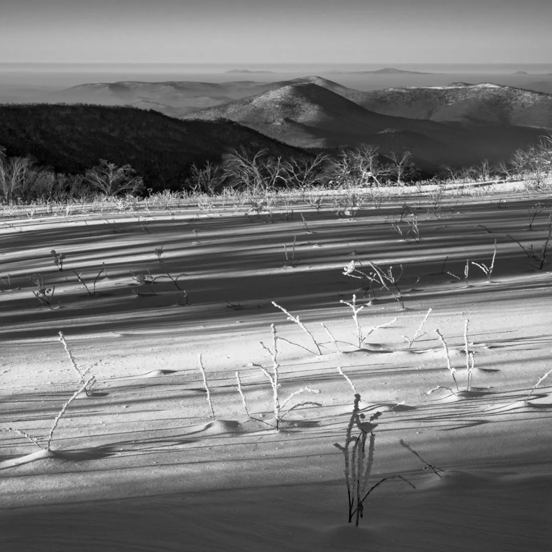 作者偏爱传统黑白胶片摄影,多年坚持使用大画幅技术相机创作,并认为在冰雪题材的表现上,黑白胶片在影调、质感等方面仍有着独特的优势。