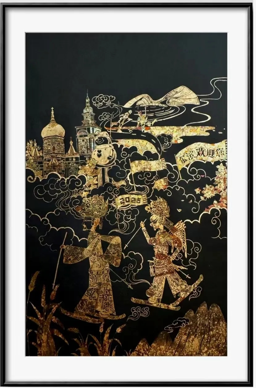 金箔画 《相约尔滨·逐梦亚冬》 王露 魏梓莹