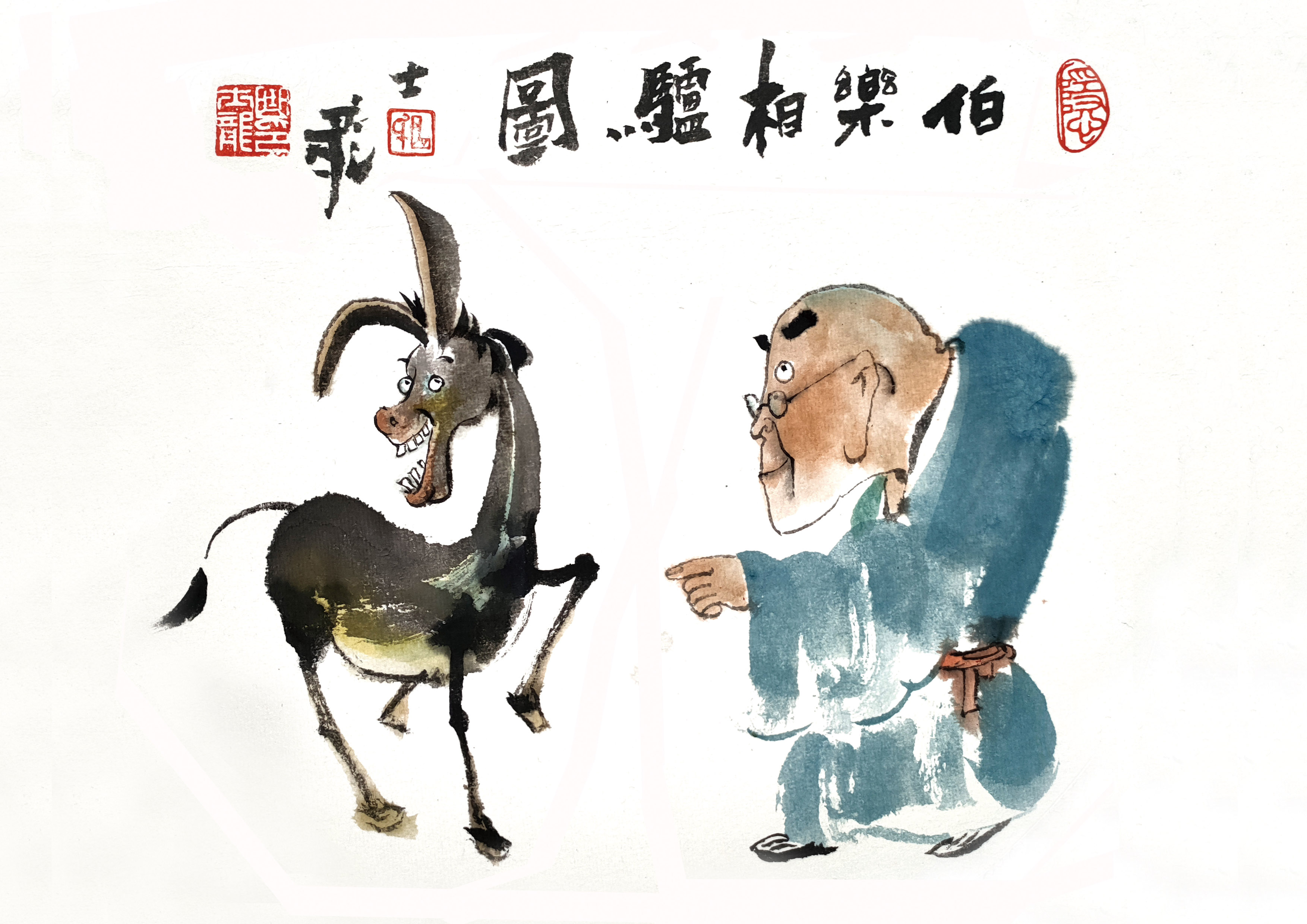 《伯乐相驴图》,曲世龙,29.7cm×42cm,2022年