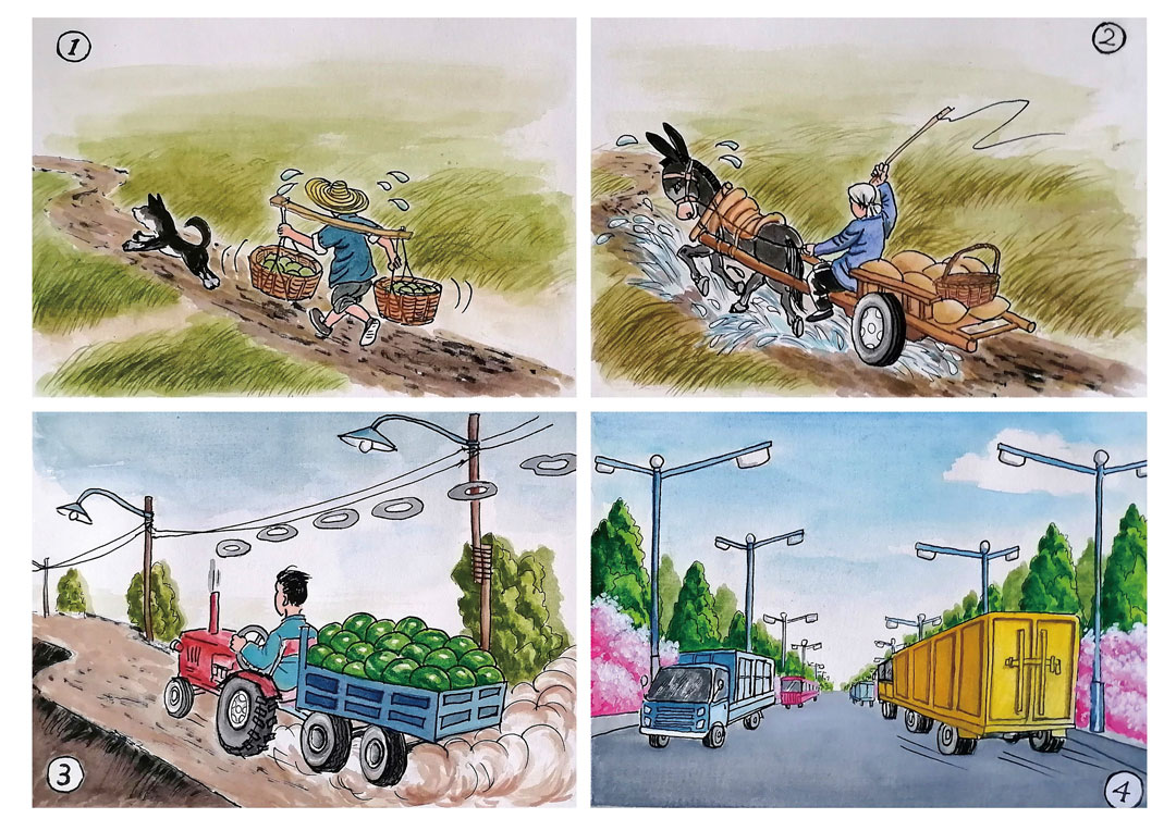 《乡村路上,越走越亮堂!》陈志春,29.7cm×42cm,2022年