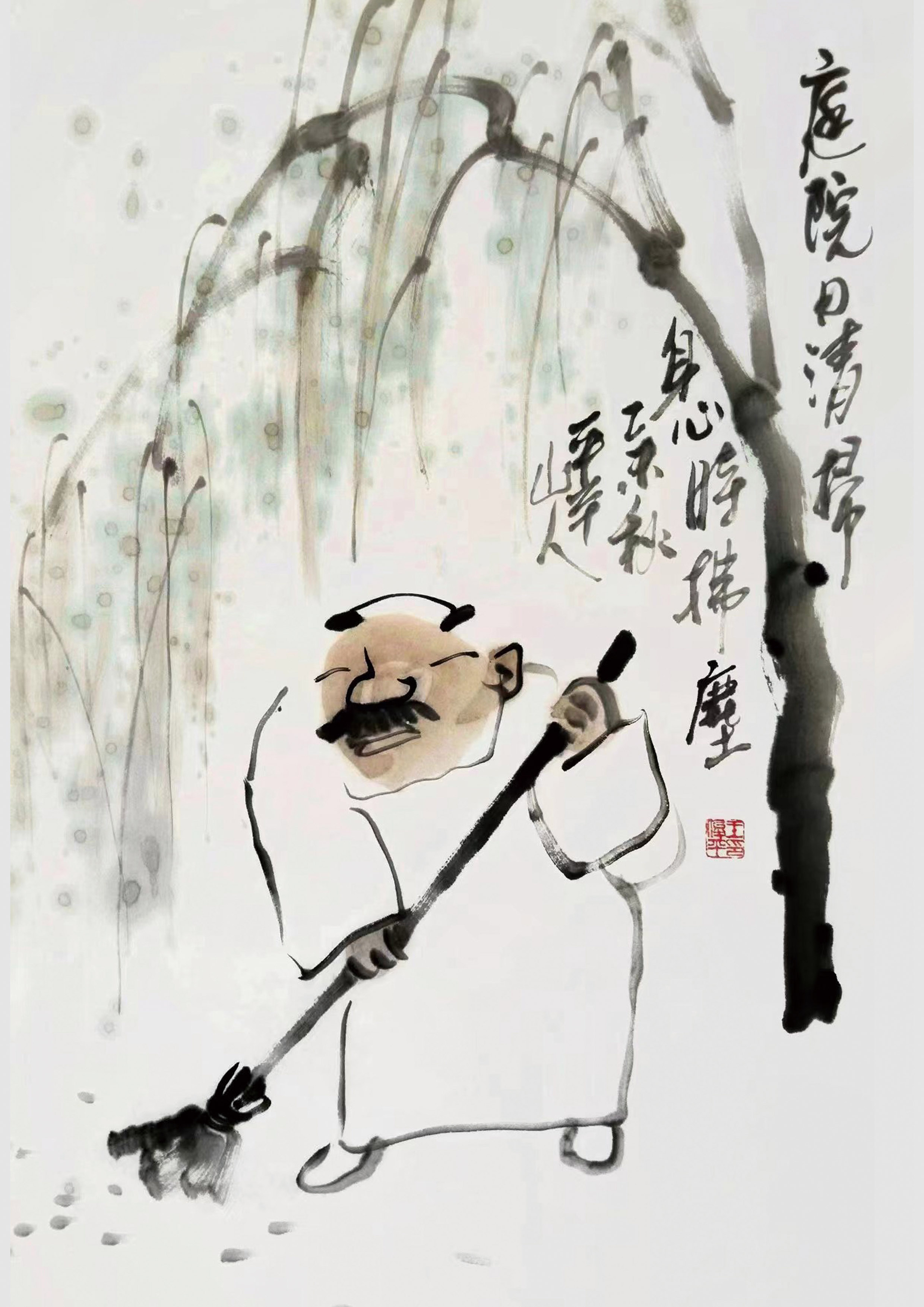 《庭院日清扫,身心时拂尘》,王俊平,42cm×29.7cm,2022年