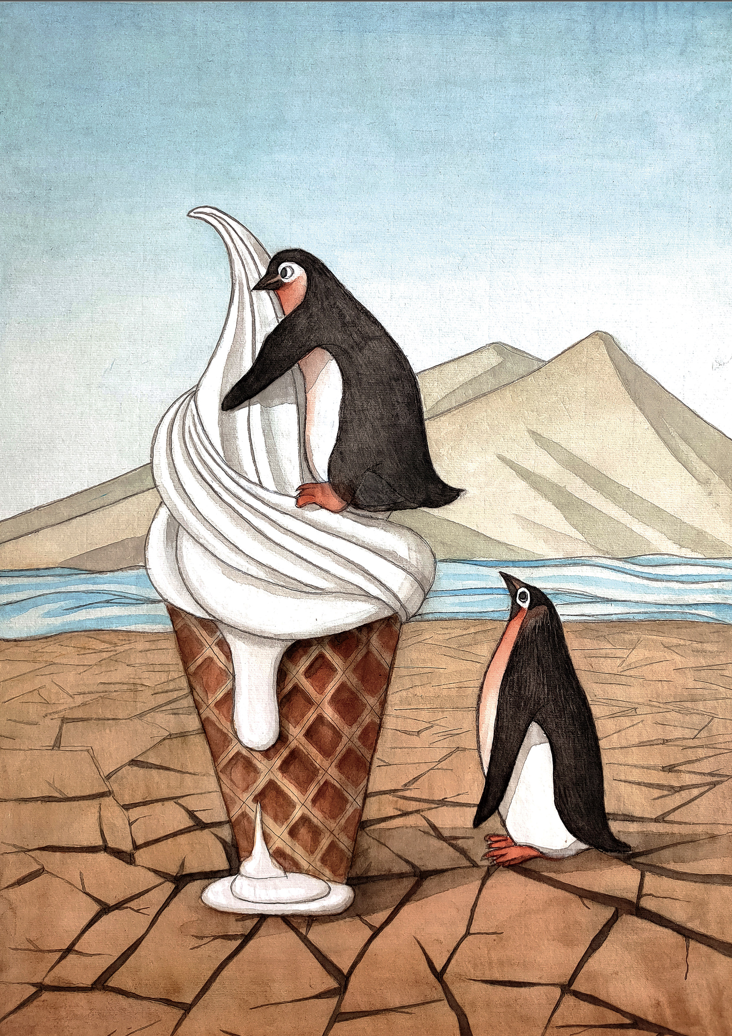 《最后的冰凌》,冯丽妹,银奖,42cm×29.7cm,2022年