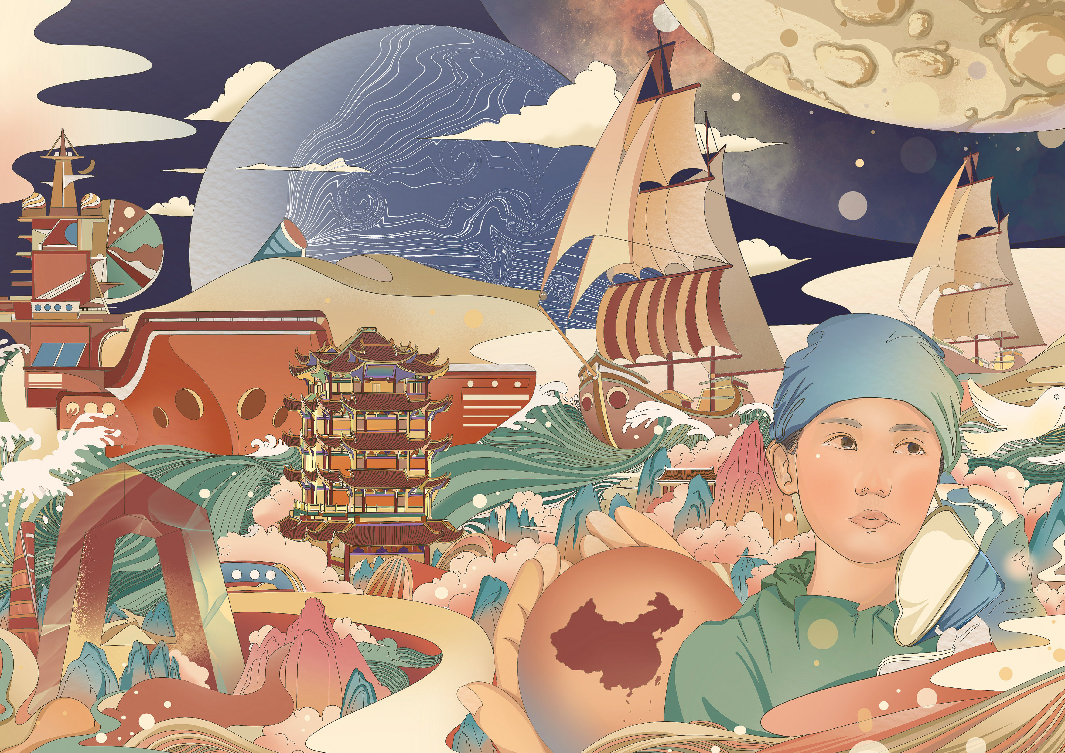 《理想照耀中国》,鲍春宇,优秀奖,29.7cm×42cm,2022年