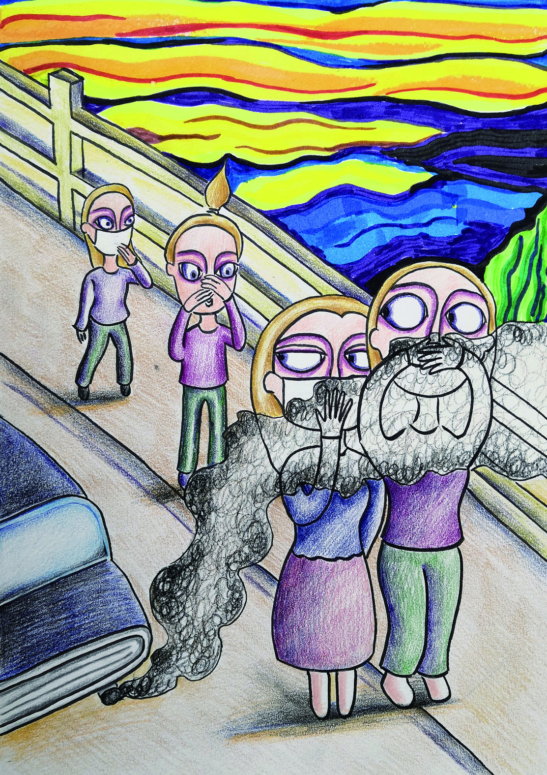 《躲避》,苏虹硕,优秀奖,29.7cm×42cm,2022年