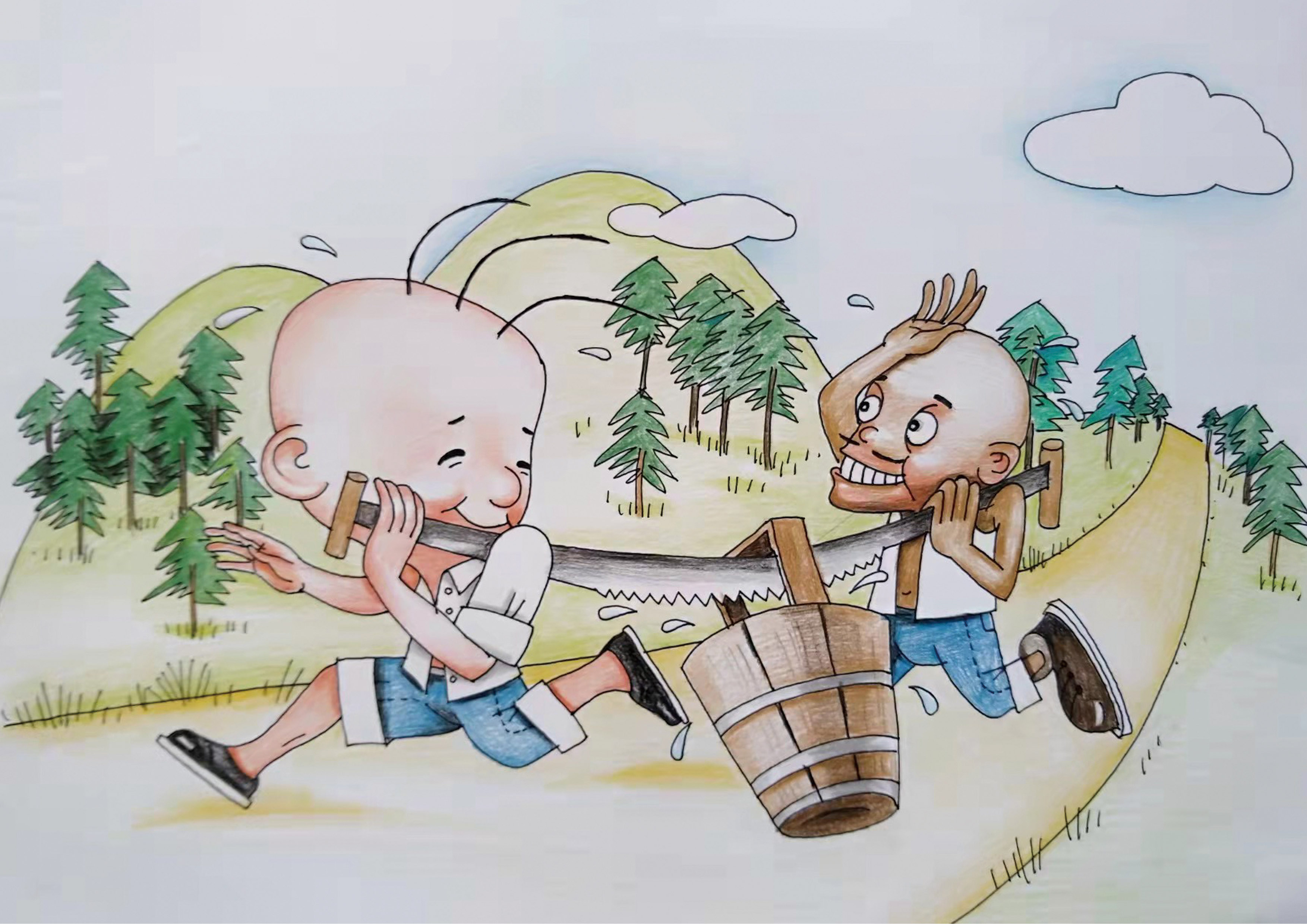 《多此一“锯”》,张建淳,29.7cm×42cm,2021年