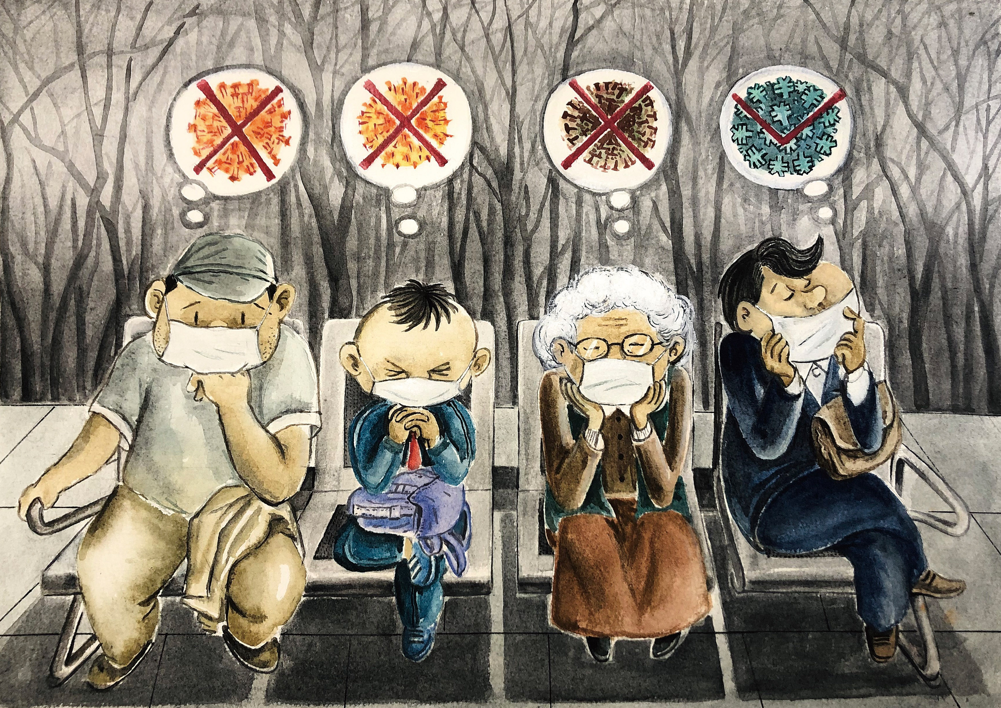 《恐惧症》,邓春红,优秀奖,42cm×29.7cm,2022年