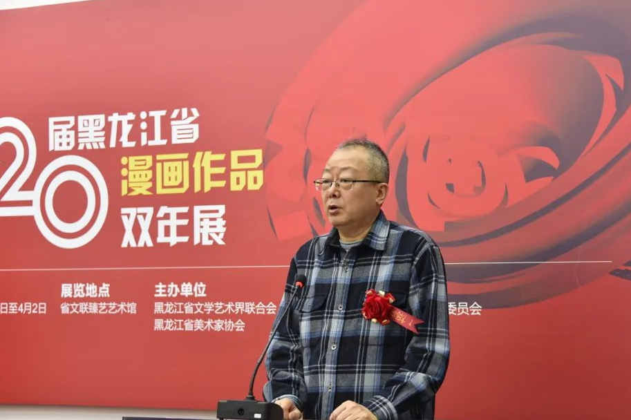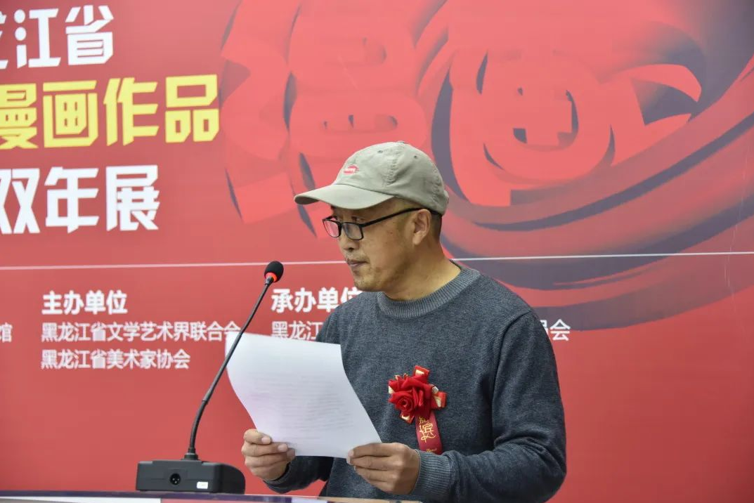 由黑龙江省文学艺术界联合会、黑龙江省美术家协会主办,黑龙江省美术家协会漫画艺术委员会承办的“第二十届黑龙江省漫画作品双年展”于3月21日在省文联臻艺艺术馆开幕。省文联副主席、党组成员王广,省文联副主席、省美协主席赵云龙及省美协主席团成员、相关艺委会主要负责同志参加开幕式。