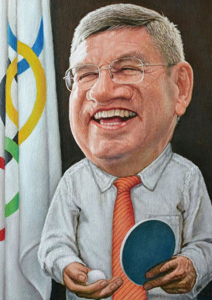 《国际奥委会主席巴赫漫像》,薛建,铜奖,42cm×29.7cm,2021年