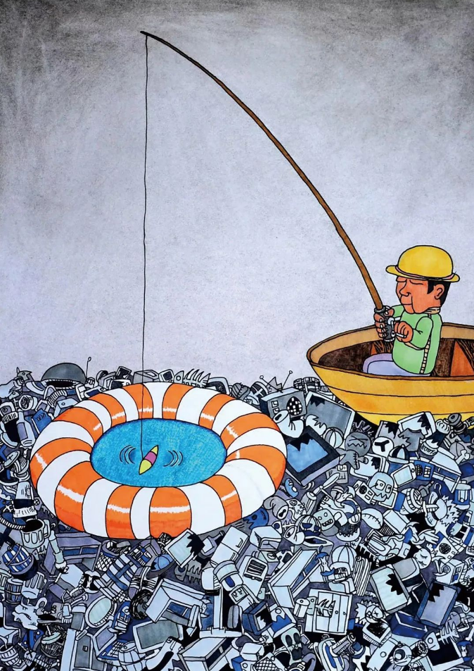 《钓》,张阿鹤,铜奖,42cm×29.7cm,2021年