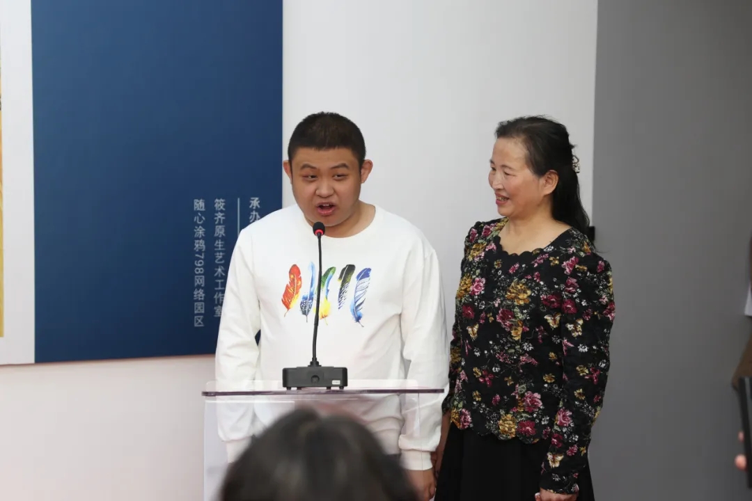 开幕式由省直关工委副主任雷铜主持,省文联党组成员、副主席王广致辞,“随心涂鸦798网络园区”发起人筱齐介绍参展作者情况,刘博超和他的妈妈代表全体参展作者发言。省人大常委会委员、省人大法制委员会副主任委员刘红岩,省人大常委会委员、省人大教科文卫委员会委员李皎,省关工委秘书长邹积慧,省残联党组书记、理事长关威,省文联党组书记马新,省文旅厅党组成员、副厅长于峰,省文联党组成员、副主席黄锦秋及省委社会工作部、省民政厅、省妇联、省残联、新闻媒体等相关部门领导、社会各界嘉宾130余人参加开幕式。