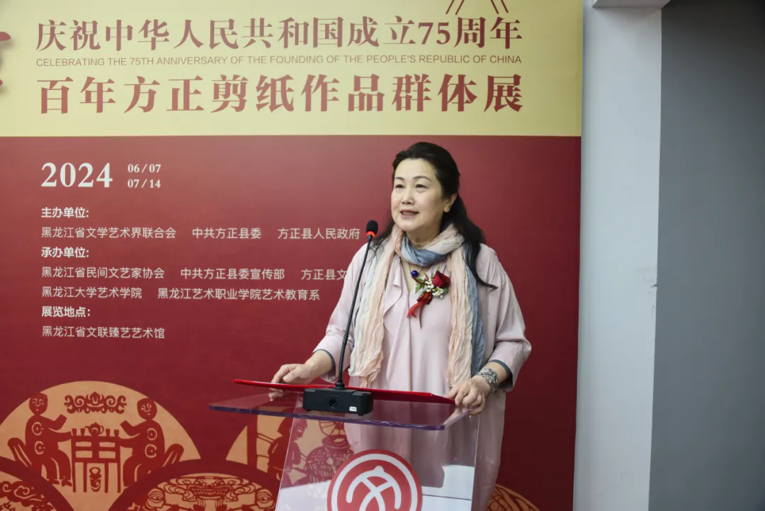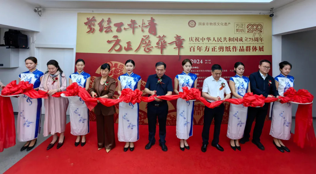 由黑龙江省文学艺术界联合会、中共方正县委、方正县人民政府主办的“剪绘百年情 方正展华章”庆祝中华人民共和国成立75周年百年方正剪纸作品群体展于7月1日在省文联“臻艺”艺术馆开幕。
