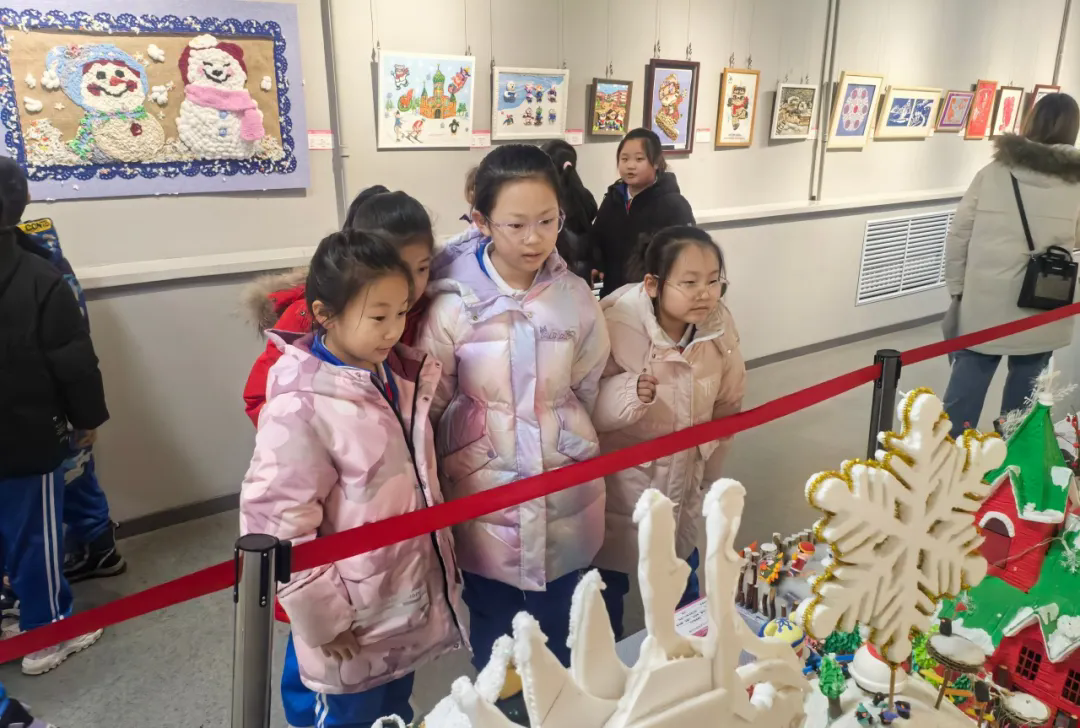 展览共展出183件冰雪主题的民间工艺劳动实践作品,包含鱼皮画、雕刻、剪纸、漆画、布艺、陶瓷等种类。参展作者以冰雪民俗、冰雪运动、亚冬会吉祥物等内容为创作题材,以冰雪文化的独特魅力、传递亚冬会的核心理念为主旨,进行了一系列富有创意的创作活动。这些作品是哈尔滨市传承民间非遗文化的重要印记,也是哈尔滨市劳动教育做深做实,融入“课程、活动、家庭、生活”的实践与探索,表达了师生对亚冬会召开的美好期待。