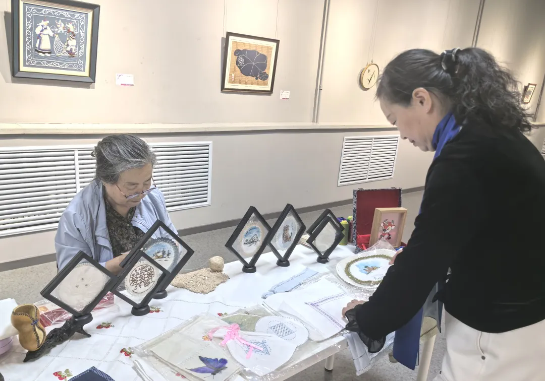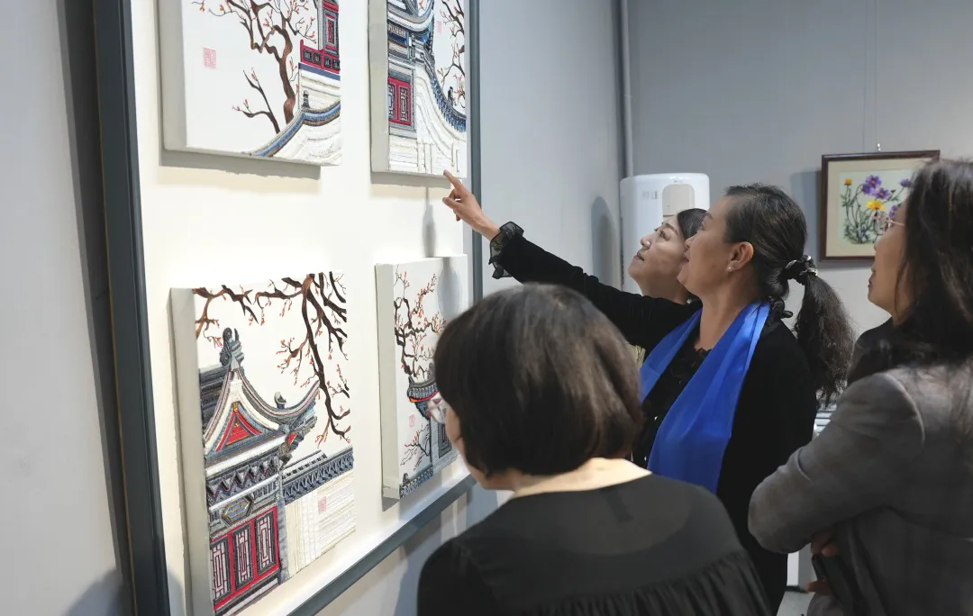 省文联党组成员、副主席杨柏婷,省文联二级巡视员、机关纪委书记仇成涛出席开幕式。省民协执行主席、哈尔滨师范大学美术学院副院长刘钻宣布展览开幕,省民协副主席、省非遗保护中心副主任吴璇介绍展览概况,入展作者代表郭勇发表参展感言。省民协主席团、理事会部分成员以及刺绣爱好者60余人参加开幕式。