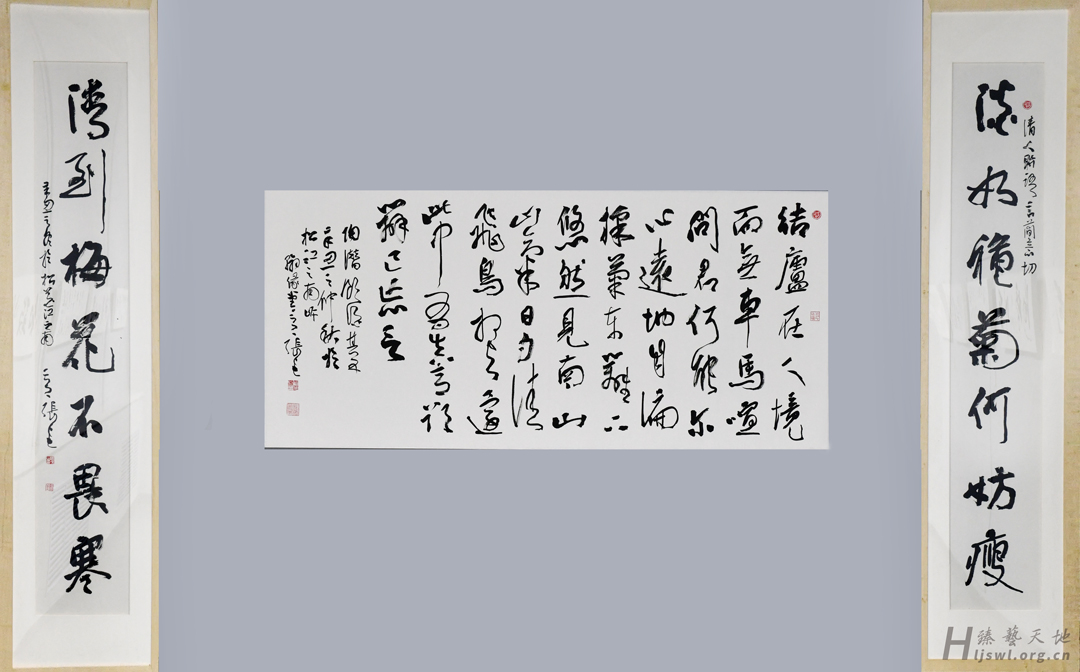 左:清人联语《淡如清到》2中:陶渊明《饮酒》右:清人联语《淡如清到》1