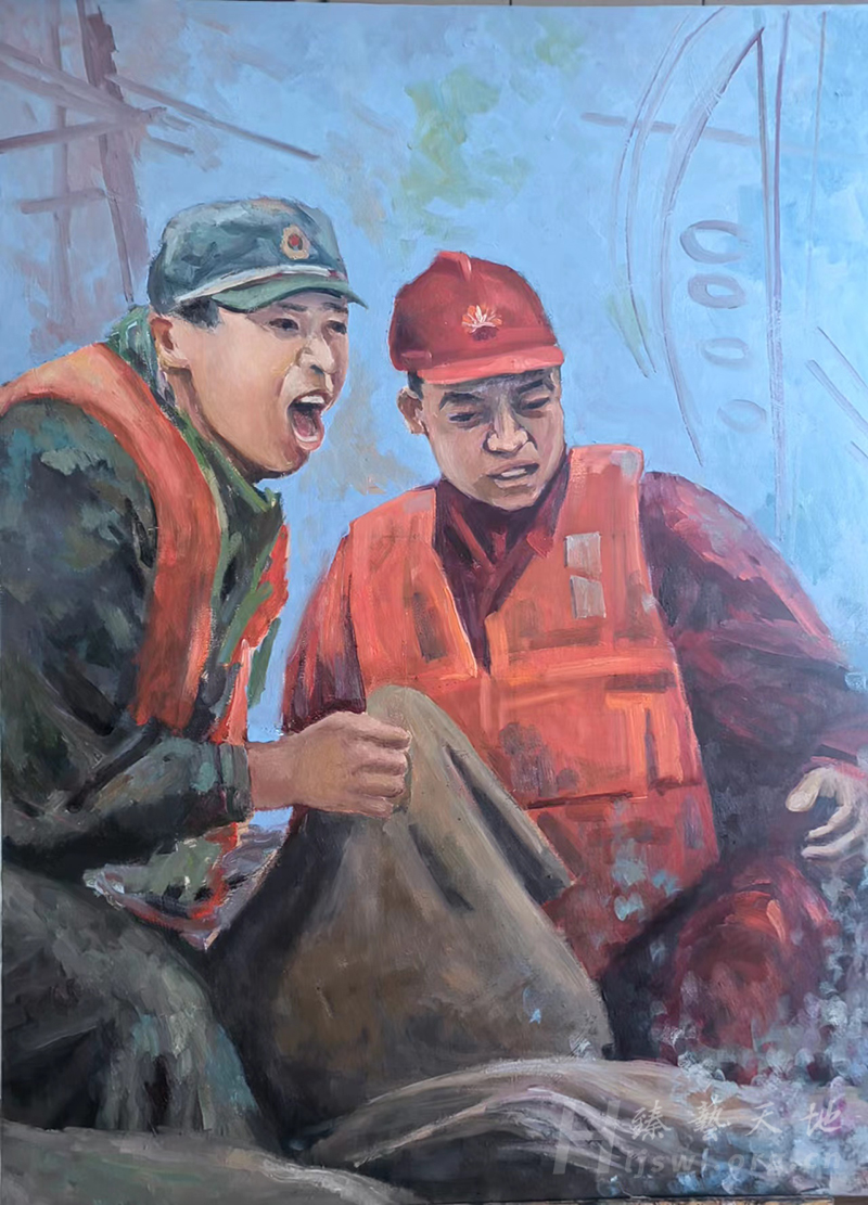 《军民携手抗洪》