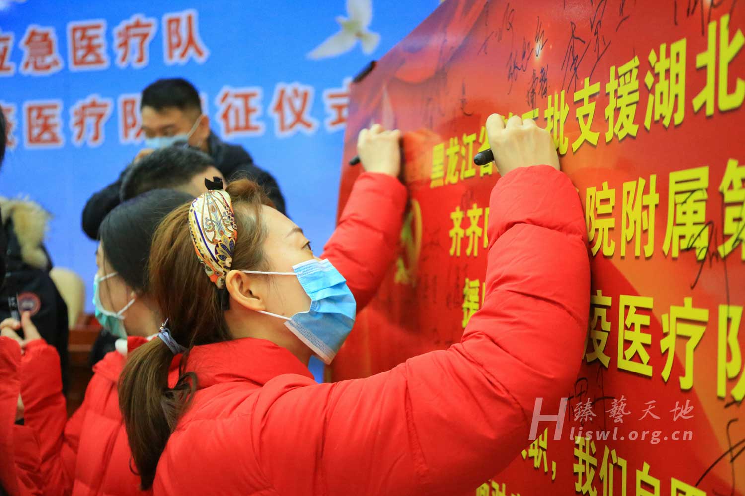 “决心”齐齐哈尔医学院附属第三医院援鄂医疗队队员王悦在抗疫医疗队誓词上签字