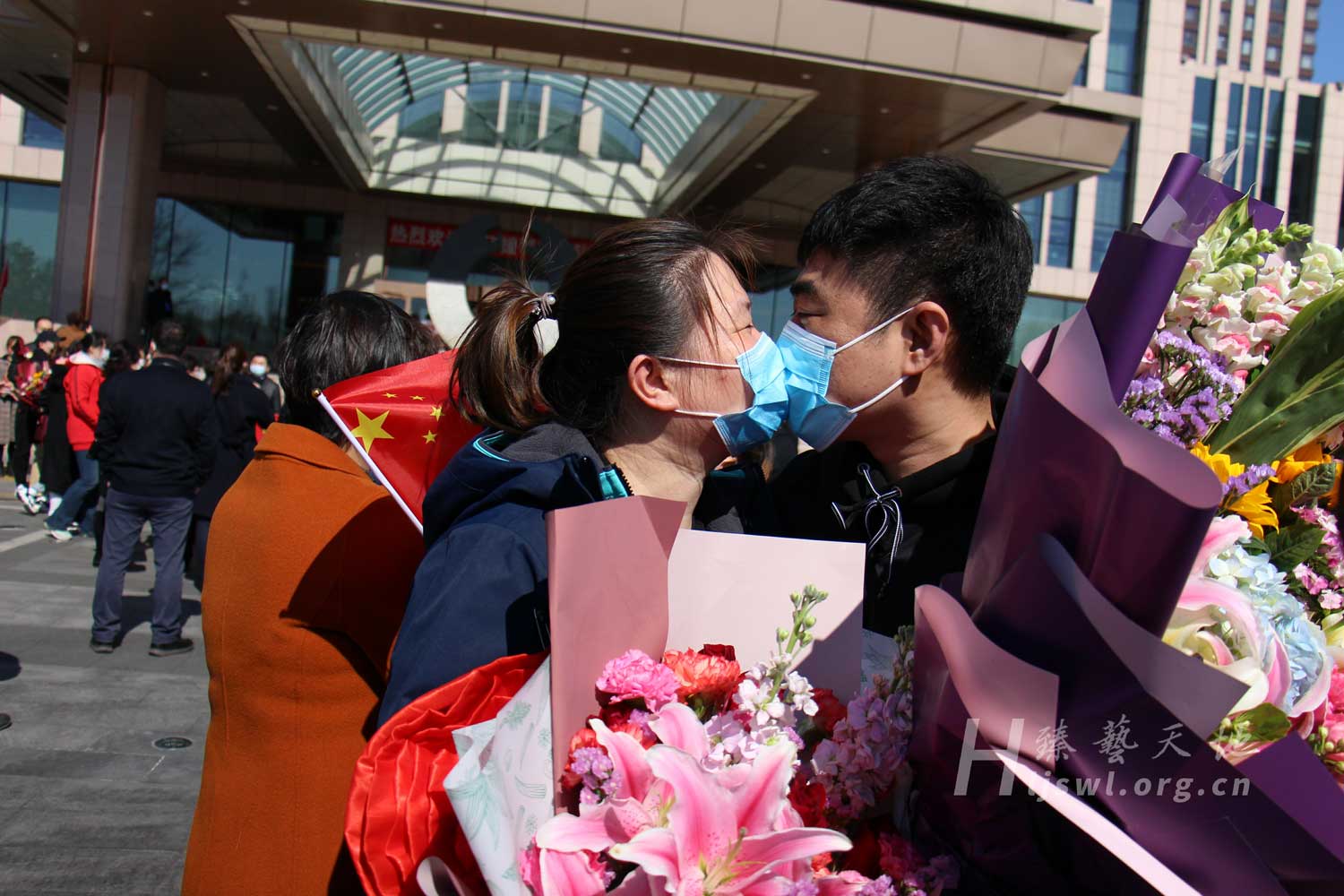 2020年4月5日, 哈尔滨市红十字中心医院,援鄂医疗战士凯旋而归,深情拥吻。
