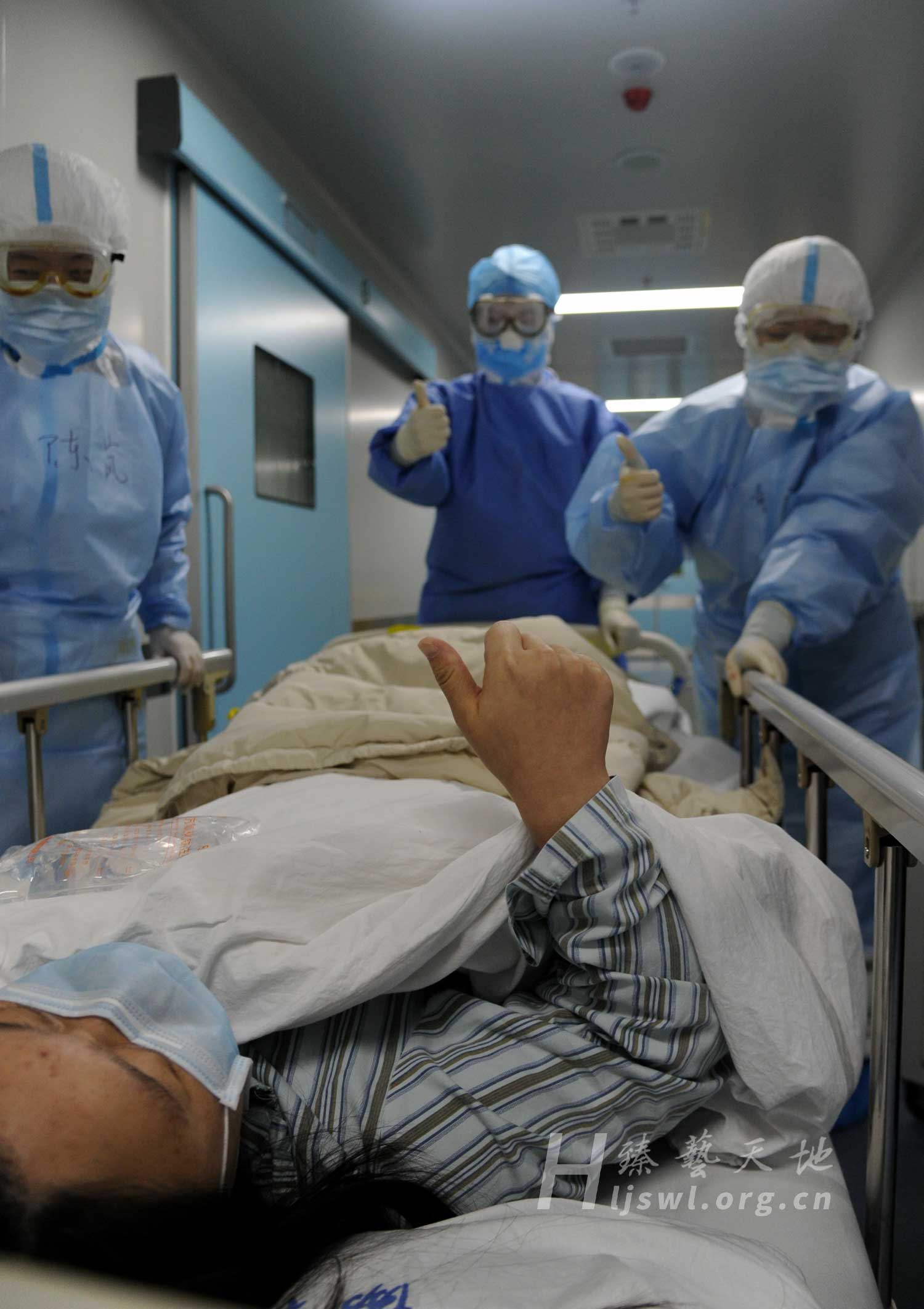手术结束后,孕产妇朱某被医护人员推出手术室,朱某为医生们竖起大拇指