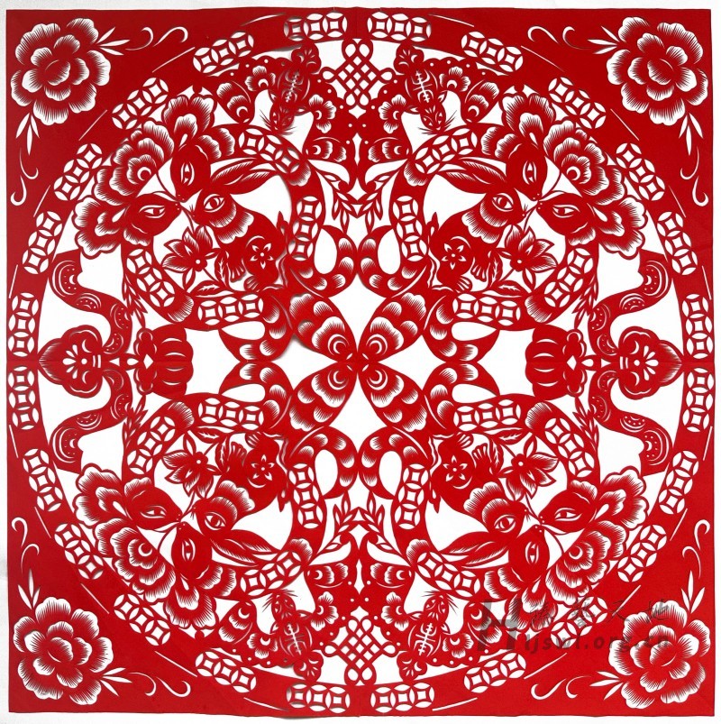 《石榴牡丹蛇盘兔》