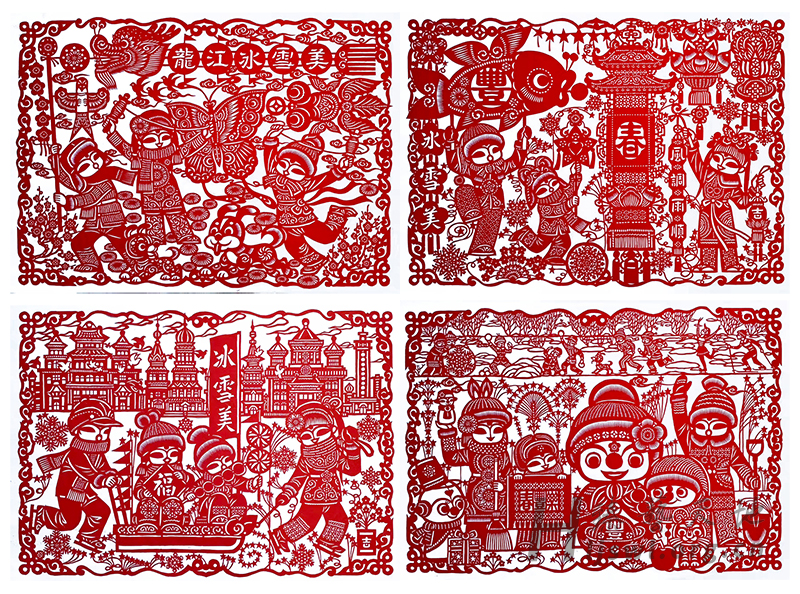 《龙江冰雪美》组图:1放风筝 2挂花灯 3冰爬犁 4堆雪人