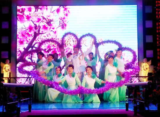 金声合唱团是隶属于牡丹江市工人文化宫的中老年合唱团,平均年龄60余岁。庆典中70名中老年歌唱爱好者为现场观众表演了独唱、小合唱、时装表演、歌伴舞、快板联唱、大合唱等20个精彩的节目,展现了牡丹江市中老年人积极乐观、健康向上的精神风貌。