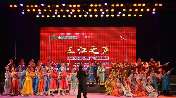 “这是我们心里的情怀,这是我们共同的骄傲,这是我们永恒的信念,这是我们未来的梦想”……由市离退休老同志组成的老干部合唱团用国粹京剧高歌咏唱《唱支山歌给党听》拉开了汇演的序幕。组歌《三江颂》展现了佳木斯市大平原、大湿地、大界江、大粮仓以及地域特色鲜明的赫哲风情。