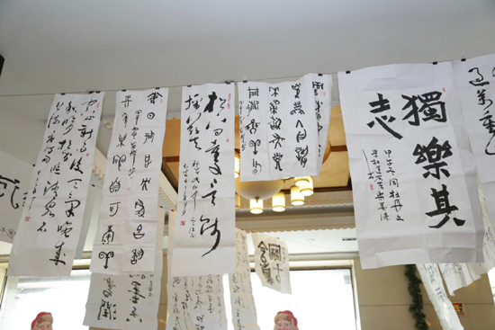 庆典活动后,文友们共同举行了新春联谊会,进行了诗歌朗诵、歌曲演唱、舞蹈、小品等节目的演出。来自书协的同仁们还现场书写了书法作品,为庆典活动平添了一抹亮色。