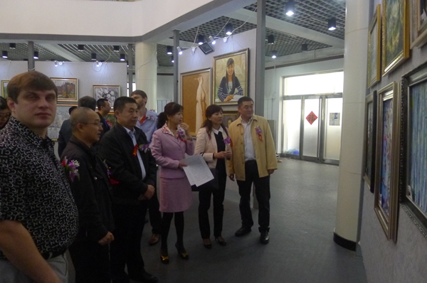 佳木斯市委常委贾君、市政协副主席颜忠出席了开幕式。前来参加开幕式的俄罗斯画家有娜塔莎、切卡索夫、阿列克谢、基里尼斯基、伊利亚、叶普盖尼耶维奇等。俄罗斯远东地区国立大学的娜塔莎女士、文联党组书记张晓慧在开幕式上分别代表俄中双方发表了祝辞。社会各界300多人参加了开幕式并参观展览。