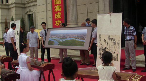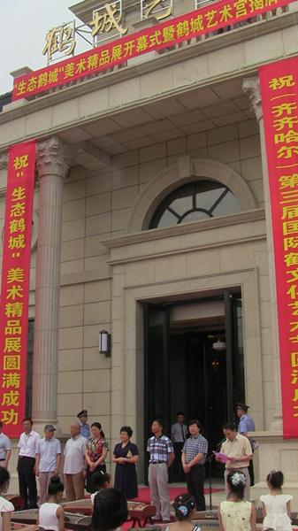 7月24日上午,中国(齐齐哈尔)第三届国际鹤文化艺术节系列活动的两项内容——“生态鹤城”美术精品展开幕式暨鹤城艺术宫揭牌仪式在金色世家会馆举行。齐齐哈尔市领导高虹、刘艳芳出席开幕式,为鹤城艺术宫揭牌,与社会各界书法爱好者参观展览。