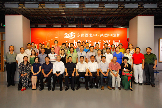 近日,中共中央政治局召开会议,审议通过了《关于繁荣发展社会主义文艺的意见》,强调要坚持以人民为中心的创作导向,为人民抒写、为人民抒情。9月13日,由广东省广州市、重庆市永川区、内蒙古自治区包头市、黑龙江省牡丹江市、河南省洛阳市五城市文联联合主办、轮流承办的2015年“东南西北中•共圆中国梦”五城书画巡展(广州站)在广东省文联艺术馆隆重开幕。本次展览是“东南西北中•共圆中国梦”五城书画巡展的第二站,也是五城文联加强文化交流,打造具有五城独特的城市特色文化品牌,学习贯彻落实中共中央《关于繁荣发展社会主义文艺的意见》精神的一次实际行动。牡丹江市文联党组书记、主席冯红带队,一行7人应邀参加了此次展览开幕式。