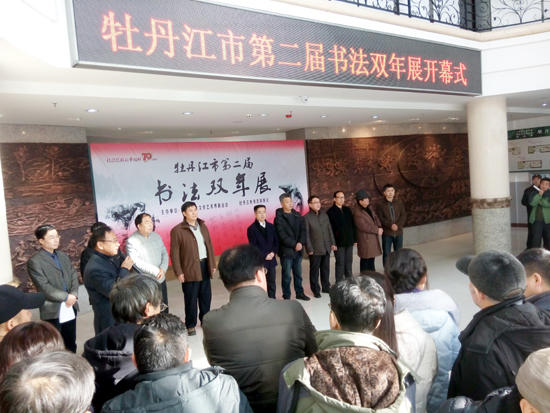 今年是世界反法西斯战争及中国人民抗日战争胜利70周年,为了铭记历史、缅怀英烈,弘扬优秀传统文化,繁荣和丰富牡丹江市文艺事业,展示书法艺术创作成果,贯彻落实中共中央《关于繁荣发展社会主义文艺的意见》精神,按照牡丹江市委、市政府的总体要求和部署,12月12日由牡丹江市文联、市书协共同主办的纪念抗日战争胜利70周年牡丹江市第二届书法双年展在牡丹江市博物馆隆重举行。牡丹江市委宣传部常务副部长王永平、市人大科教文卫委员会主任张殿权、市政协科教文卫体委员会主任李新代、市文联主席冯红及全市书画界的工作者及爱好者近千人参加了开幕式,共享两年一次的书法盛宴。市文联副主席禇保军主持开幕式,市书协主席韩润森、市文联主席冯红分别致辞。市委宣传部常务副部长王永平和市文联主席冯红为获奖作者颁奖。