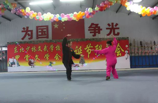 东北少林文武学校的学生正在表演武术