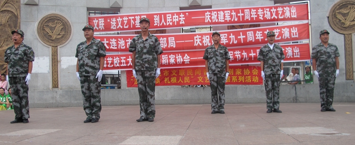 八一建军节这天,由五大连池市文联、老干部局主办,民间音乐戏剧家协会、舞蹈家协会、杨楠艺校承办的《“送文艺下基层、到人民中去”庆祝建军九十周年》专场文艺演出在丽都广场举行。