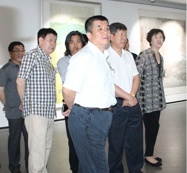 省文联副主席、省美协主席吴团良、秘书长赵丹琪陪同中国美协副主席吴为山、省委宣传部副部长赵德信、省文联主席傅道彬参观展览