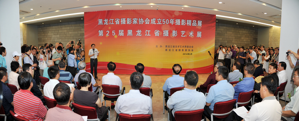 2014年6月25日,由省文联、省摄影家协会主办的“黑龙江省摄影家协会成立50年摄影精品展暨第25届黑龙江省摄影艺术展”在哈药当代美术馆隆重开幕。省级老领导、省摄协名誉主席孙维本、马国良、王海彦、谢勇、单荣范、杨光洪、张成义、邹新生,省委副秘书长康慨,省委宣传部副部长赵德信,省文联主席傅道彬,省文联党组成员、副主席计世伟,省摄协名誉主席关荣玉,省摄协顾问李晨、郑学清、闫太昌,齐齐哈尔大学党组书记李海红,中国摄协副主席、省摄协主席索久林,省摄协副主席曹晓枫、王春莉、肖凤鸣、杨进先、张利君、程颖刚、卞永平、夏富祥、郭存发,以及各地市、各行业摄协主席、摄影家、摄影爱好者及新闻媒体600多人参加开幕式。开幕式由索久林主持。