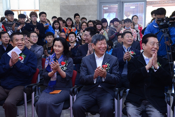 开幕式现场(第一排左起:黑龙江省文联主席傅道彬、著名演员何赛飞、黑龙江省省委宣传部副部长赵德信、著名歌唱家李双江)