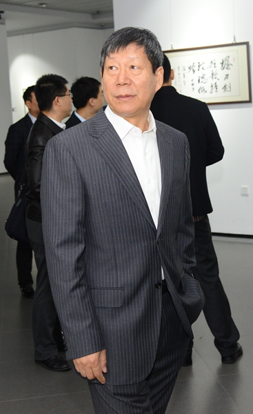 黑龙江省省委宣传部副部长赵德信正在参观书画展