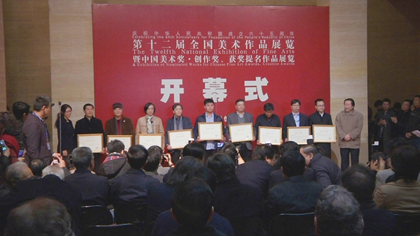 2014年12月15日上午10时,第十二届全国美术作品展览暨中国美术奖•创作奖、获奖提名作品展览在中国美术馆举行了隆重的开幕式及颁奖仪式。中宣部、文化部、中国文联及中国美协领导出席了开幕式,文化部党组书记、部长蔡武,中国文联党组书记、副主席、书记处书记赵实,中国美协主席刘大为分别致词,开幕式由中国美协分党组书记、常务副主席吴长江主持。