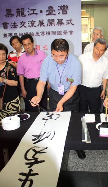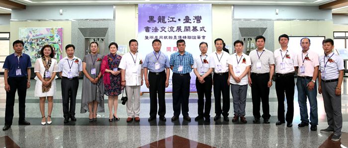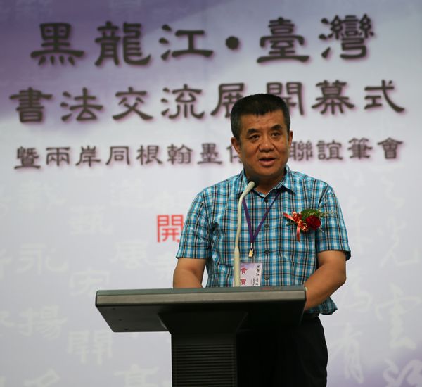 2015年7月4日,由黑龙江省书法家协会、台湾中国书法学会共同主办的“黑龙江•台湾书法交流展”在台湾台中市港区艺术中心开幕。以黑龙江省文联主席、博士生导师傅道彬为团长,黑龙江省文联党组成员、副主席、中国书协理事、黑龙江省书协常务副主席兼秘书长张戈为副团长的黑龙江省书法家代表团一行15人出席了开幕式。