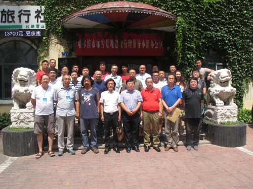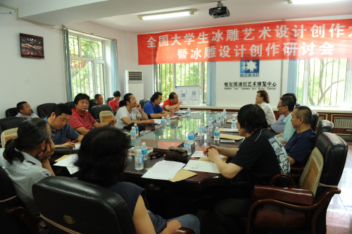 全国大学生冰雕艺术设计创作大赛举办十周年纪念暨2015冰雕设计创作研讨会于7月12日在哈尔滨冰灯艺术博览中心举行。省文联副主席计世伟,省文联委员、省艺术设计协会常务会长兼秘书长张震甫,哈尔滨冰灯艺术博览中心主任王世昭,省艺术设计协会冰雕设计分会会长、哈尔滨冰灯艺术博览中心副主任、冰雪艺术大师朱晓东,省雕塑院院长李向宇,省艺术设计协会副会长袁耕,哈尔滨理工大学艺术学院院长林学伟,哈尔滨画院院长吕滨以及哈尔滨工业大学建筑学院、黑龙江大学艺术学院、哈尔滨理工大学艺术学院、东北林业大学园林学院、哈尔滨学院艺术与设计学院、东北石油大学艺术学院、齐齐哈尔大学美术与艺术设计学院、牡丹江师范学院美术与艺术设计学院等13所高校的代表、职业冰雕师、省艺术设计协会冰雕设计分会的代表应邀出席了会议。