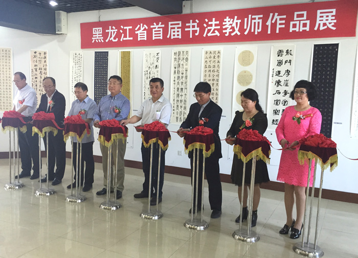 为深入贯彻落实习近平总书记在全国文艺座谈会上的重要讲话精神,贯彻《国家中长期教育改革和发展规划纲要》,加强对书法教育工作的指导,加强书法教师队伍建设,鼓励书法文艺工作者和教育者弘扬中国精神、凝聚中国力量、传承中国文化,由黑龙江省文学艺术界联合会、黑龙江省教育厅主办,黑龙江省书法家协会、省书法活动中心、哈尔滨市南岗区奥翔文化培训学校承办的黑龙江省首届书法教师作品展于2015年9月17日在黑龙江书法馆举行。