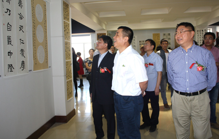 傅道彬、张戈、牧童、梁秀海、王凯霞、胡志平、王斌、高敏共同剪彩。胡志平在开幕式上致词,他说,通过此次展览,势必将进一步激发广大书法教师书法学习和创作热情,提高书写水平,增强创作能力,促进书法教育教学的更好的开展。开幕式由王斌主持。