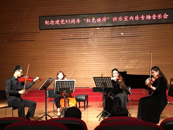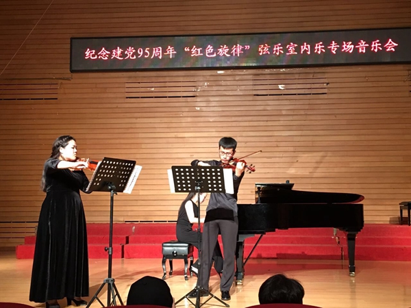 为纪念中国共产党成立95周年,弘扬党的优良传统,讴歌党的丰功伟绩,七一期间,由黑龙江省音乐家协会主办、哈尔滨师范大学音乐学院与黑龙江工程学院团委联合承办的纪念建党95周年“红色旋律”弦乐室内乐共三场专场音乐会分别在黑龙江工程学院、哈师大音乐学院音乐厅、哈尔滨老会堂音乐厅隆重举行,为冰城人民带来了高雅的音乐盛宴。