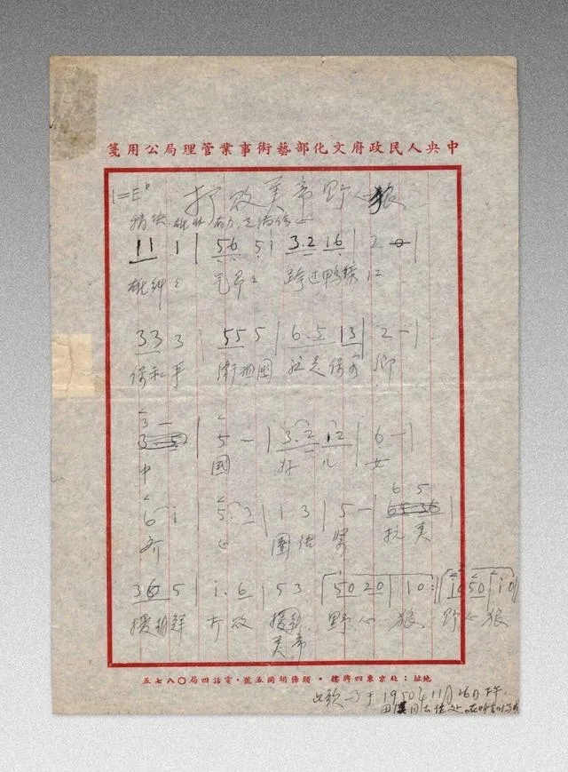 周巍峙在会议中谱曲的手稿