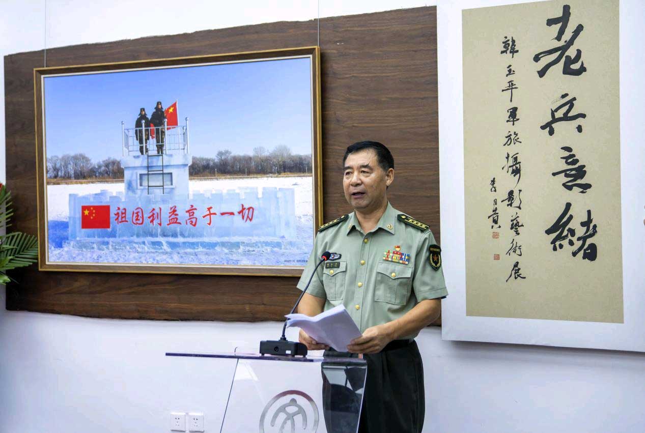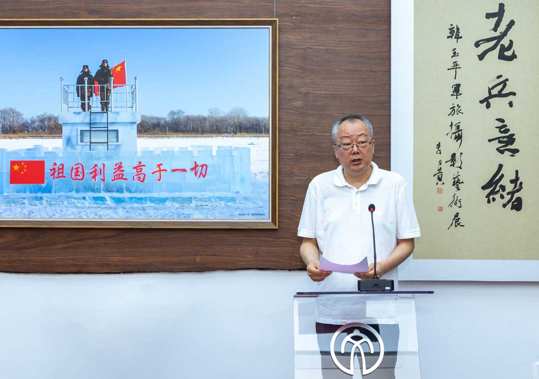 省文联主席韩会峰为开幕式致辞。他说,韩玉平运用光影之笔记录军旅生活,定格边疆风貌和北国风光,塑造了新一代北疆卫士的傲人风骨和卓越风采,营造了“影中有画、画中有诗、诗中有情”的艺术境界,彰显了当代军人热爱祖国、保卫边疆的家国情怀。值此共同庆祝党的百年华诞,迎庆第九十四个“八一”建军节之际,向出席今天活动的现役军人、退役军人,并通过你们向你们的亲人致以节日的问候和美好的祝愿!