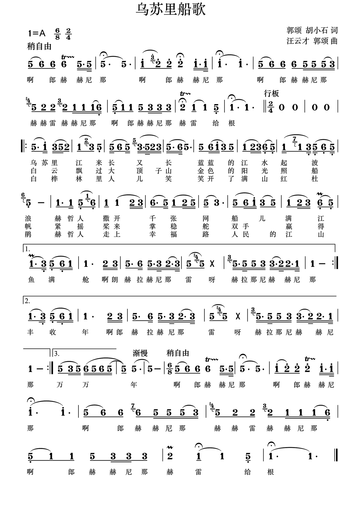 《乌苏里船歌》是由郭颂、胡小石作词,郭颂、汪云才作曲,郭颂演唱的歌曲,该曲根据赫哲族民间曲调改编,于1962年创作完成。1980年,该曲被联合国教科文组织选为国际音乐教材(亚太地区)。1989年,郭颂凭借演唱该曲获得首届金唱片奖。