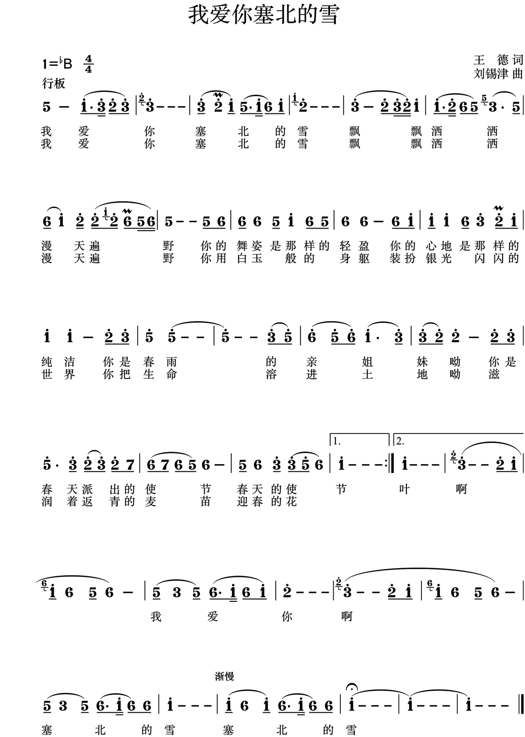 《我爱你塞北的雪》是由王德作词,刘锡津作曲,周琪华演唱的歌曲,该曲创作于1980年,2019年6月,该曲入选“庆祝中华人民共和国成立70周年优秀歌曲100首”。