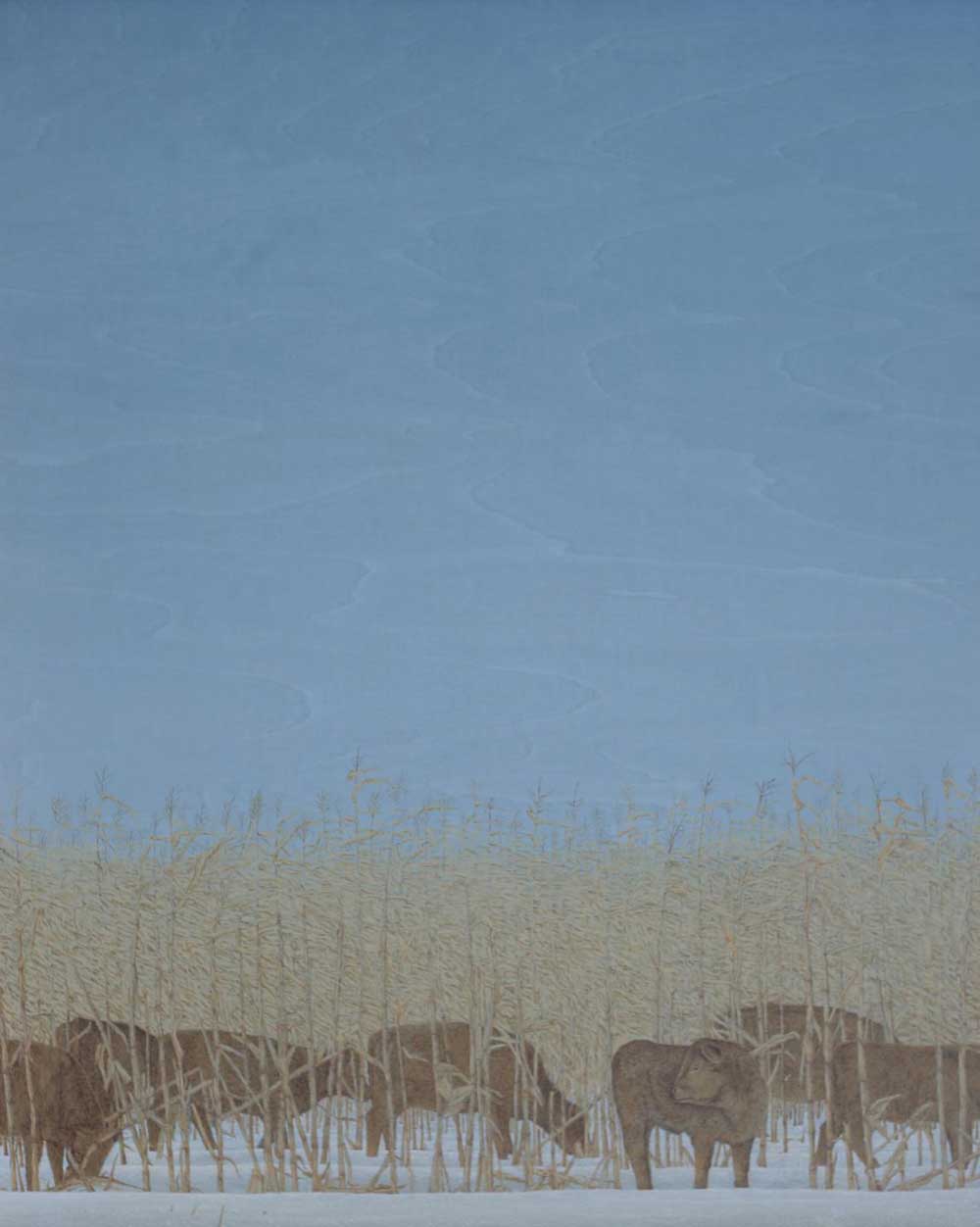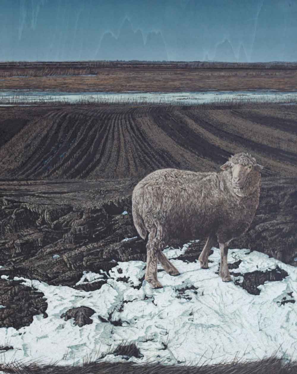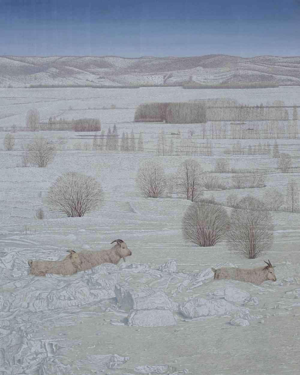 刘德才,《刻在北大荒的土地上》,插图,作品尺寸:47cm×36cm×5幅,2014年,获第十二届全国美展金奖。评论文章及创作谈有:于承佑,《踏荒寻梦——青年画家刘德才作品简析》。