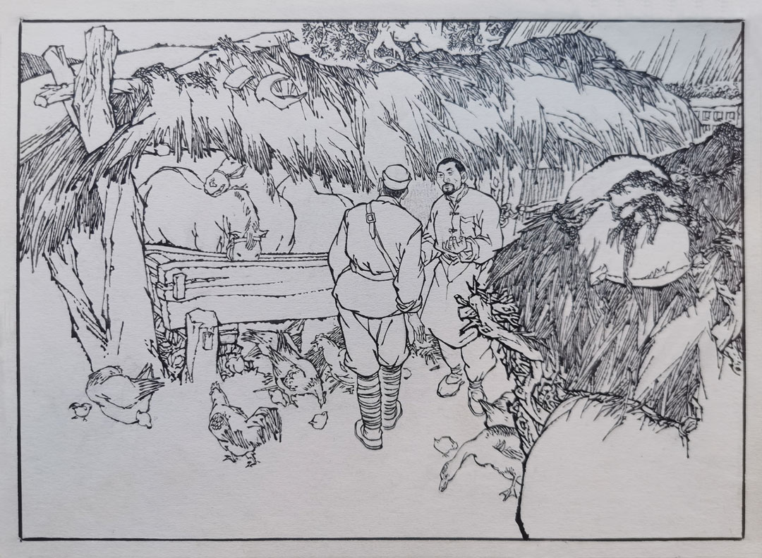 1977年创作的连环画《二月风暴》与1979年绘制的连环画《罕达犴的踪迹》均由黑龙江人民出版社正式出版。进入八十年代年,王纯信的连环画创作不仅更加趋于成熟,同时也进入了相对的创作稳定期。无论《沙海魂》《真假黑旋风》《塞上忠魂》还是1984年出版的《马半仙外传》《狗项圈的秘密》《孤军血泪》都显示了他的深厚功力和独特风格。