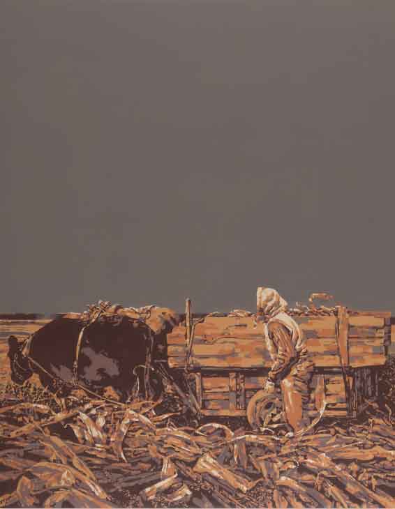王僖山,《一年到头·之二》,版画,110cm×85cm,2007年,获第十八届全国版展中国美术提名奖,入选第三届中国北京国际美术双年展、第九届中国艺术节——中国风格·时代丹青美展、春天的故事——全国版画艺术精品展及首届云南国际版画展,被中国美术馆、上海美术馆等收藏。